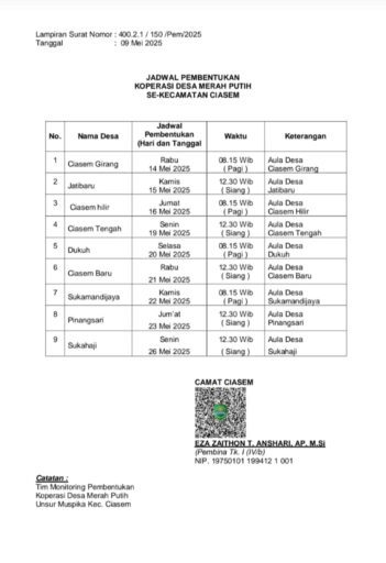Sesuai pengamatan awak media, Kegiatan Pembentukan Koperasi Merah Putih sejak tanggal 14-26 Mei 2025 menjadi sorotan, karena pihak pemerintah tidak pernah memberikan Informasi baik Pembukaan Pendaftaran sampai Agenda Pembentukan di desa masing-masing di wilayah ciasem kabupaten subang – Jawa Barat.