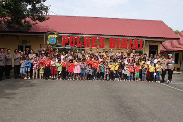 Anak – Anak Yatim Melaksanakan Giat Binrohtal Bersama Personil Polres Binjsi