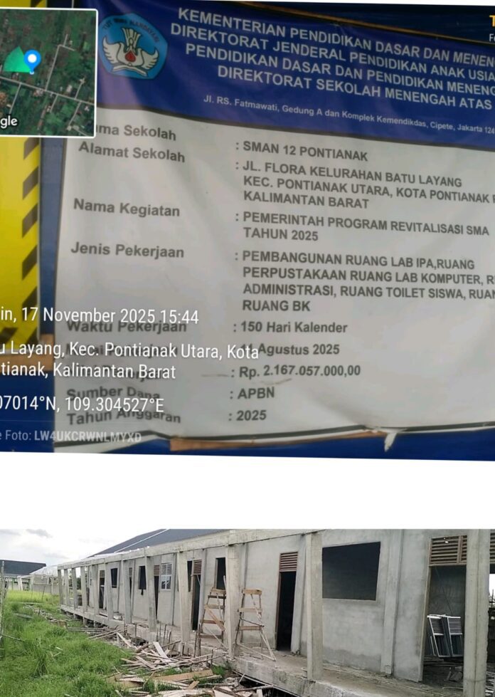Proyek Pemerintah Program Revitalisasi SMA Tahun 2025 yang dilaksanakan di lingkungan SMA Negeri 12 Pontianak diduga menyimpan sejumlah kejanggalan. Indikasi ketidakwajaran ini mencuat mulai dari proses pengelolaan proyek, keterlibatan pihak ketiga yang tidak jelas, hingga dugaan pelanggaran keselamatan dan kesehatan kerja (K3), yang membuka ruang kuat terhadap dugaan praktik korupsi dalam pelaksanaan Anggaran Pendapatan dan Belanja Negara (APBN) Tahun 2025.