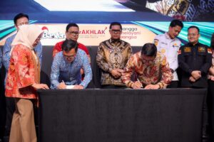 Gubernur Banten Andra Soni menyaksikan penandatanganan dua komitmen investasi besar dalam Banten Investment Forum 2025.
