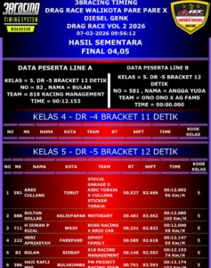 “Iya bang, puji syukur bisa menjuarai event Drag Race di Parepare yang dilaksanakan dari tanggal 7 sampai 8 Februari 2026. Pesertanya dari berbagai kabupaten di Sulsel,” sebut Cullang.