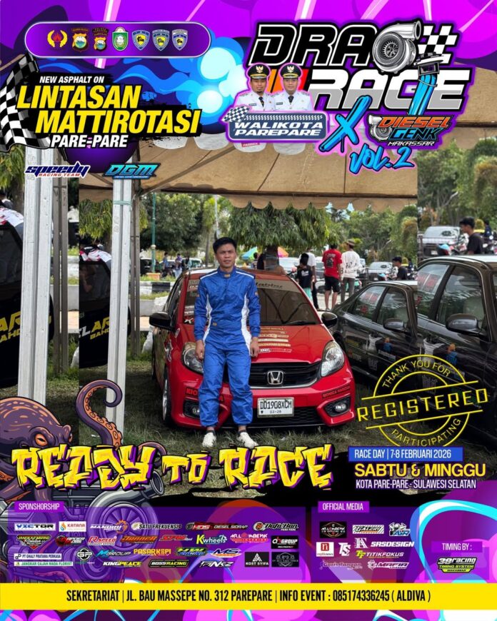 TORAJA UTARA – Andi Cullang yang akrab dikenal dengan sebutan Cullang Stiker, bawa harum nama kabupaten Toraja Utara di ajang balapan seri Drag Race Walikota Parepare, Selasa (10/2/2026).