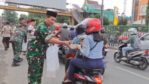 Warta.in Kodam Jaya, Kota Bekasi – Dalam semangat berbagi di bulan suci Ramadan, Koramil 01/Kranji Kodim 0507/Bekasi bersama Lembaga Dakwah Islam Indonesia (LDII) Jawa Barat menggelar kegiatan pembagian takjil gratis bagi warga yang melintas di depan Koramil 01/Kranji, Jln. Jend Sudirman, Kranji, Bekasi Barat, pada Jumat (14/3/2025).