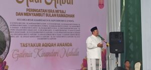 Kegiatan keagamaan tersebut berlangsung dengan penuh khidmat dan menghadirkan *KH. Fauzan Badruddin*, penceramah asal Pulau Garam, Madura, Jawa Timur, yang menyampaikan tausiyah tentang makna spiritual Isra Mi’raj serta pentingnya menjaga shalat dan akhlak dalam kehidupan bermasyarakat.