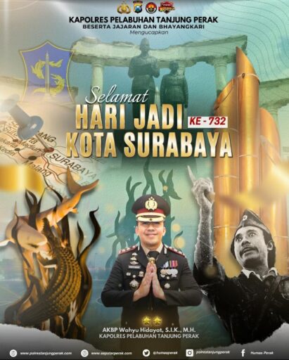 Kami Kapolres Pelabauhan Tanjung Perak Surabaya : AKBP Wahyu Hidayat, SIK., MH., Bersama Segenap Jajaran dan Bhayangkari, Mengucapkan Selamat Hari Jadi Kota Surabaya ke-732! Semoga terus maju, makmur, dan menjadi kota yang penuh inspirasi serta tak pernah berhenti berinovasi, Jaya selalu. (red)