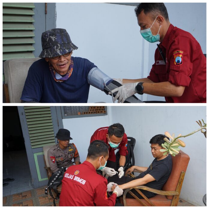 Kehadiran tim kesehatan Brimob Polda Jatim di lokasi mendapat sambutan positif dari warga sekitar.