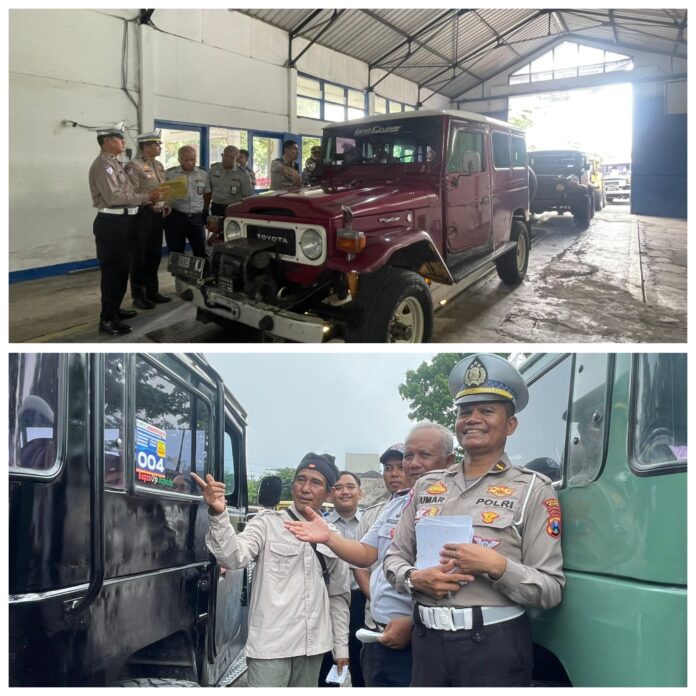 Warta In || MALANG – Polres Malang Polda Jawa Timur bersama Dinas Perhubungan Kabupaten Malang menggelar pemeriksaan teknis (ramp check) kendaraan jeep wisata Bromo Tengger Trans 4×4.