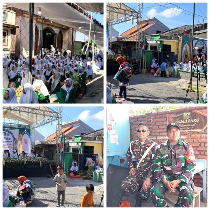 Warta In ||Gresik – Dalam rangka mendukung kelancaran kegiatan keagamaan di wilayah binaan, anggota Koramil 0817/04 Menganti, Sertu M. Abd. Wahib bersama anggota Banser, Ansor, dan personel Polsek Menganti melaksanakan pengamanan pengajian di Masjid Riyadlul Jannah, Dusun Karangpoh, Desa Hulaan, Kecamatan Menganti, Kabupaten Gresik. Kamis, (02/10/2025)
