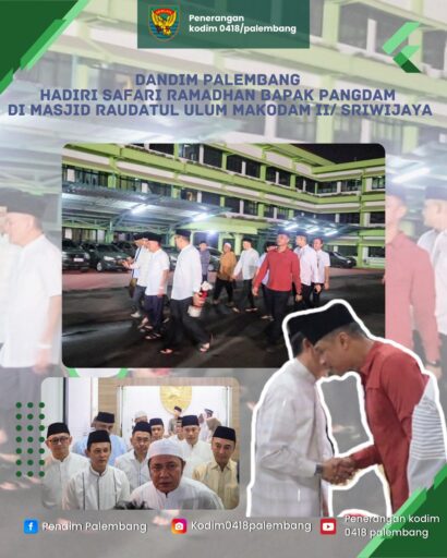 Warta.In | Palembang – Komandan Kodim (Dandim) 0418/Palembang, Erik Novianto,S.sos menghadiri kegiatan Safari Ramadhan 1447 H/2026 M yang digelar di Masjid Raudhatul Ulum Makodam II/Swj, Rabu (25/02/2026) malam.
