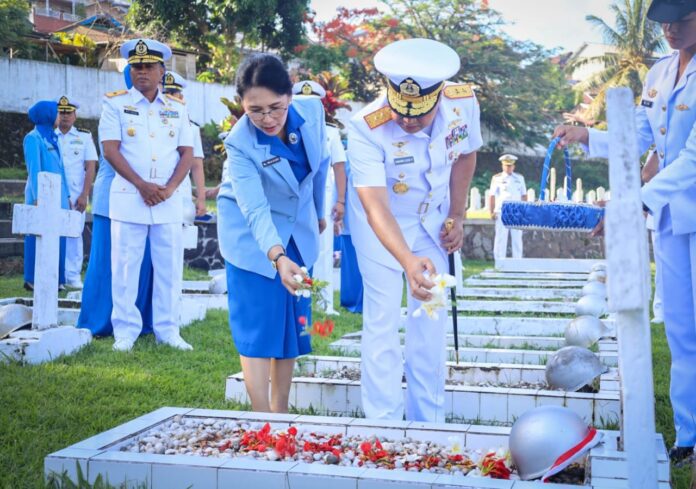 TNI AL, Ambon | warta.in – Komandan Kodaeral IX Laksamana Muda TNI Hanarko Djodi Pamungkas, S.H., didampingi Ketua Kodaeral IX Gabungan Jalasenastri Koarmada RI Ny. Inca Hanarko Djodi Pamungkas laksanakan Ziarah Tabur Bunga, bertempat di Taman Makam Pahlawan Kapaha, Jumat (28/11/2025).