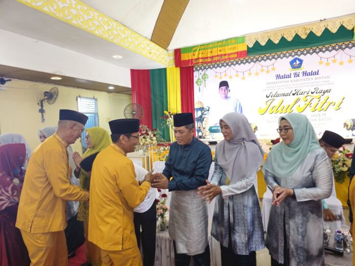 TNI AL, Bintan | warta.in – Bertempat di Gedung Nasional Tanjung Uban Bintan, Komandan Lanal Bintan Kolonel Laut (P) DR. Eko Agus Susanto, S.E., M.M., yang didampingi Ketua Cabang 5 Korcab IV DJA I Ny. Erni Eko Agus Susanto menghadiri Open House yang diselenggarakan oleh Bupati dan Wakil Bupati Bintan 1446 H/2025 M, Selasa (01/04/2025).