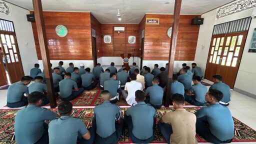 TNI AL, Simeulue | warta.in – Komandan Pangkalan TNI AL Simeulue Letkol Laut (P) Oyu Mulia Sukmana, S.T., M.T., M.Tr. Opsla., bersama Prajurit dan PNS Lanal Simeulue melaksanakan Sholat Berjamaah dan Do’a Bersama dalam rangka mendukung kelancaran dan kesuksesan pelaksanaan Kasal Cup Tahun 2025. Kegiatan ini berlangsung khidmat di Mushola Al-Bashar Mako Lanal Simeulue, Kamis (26/6/2025).