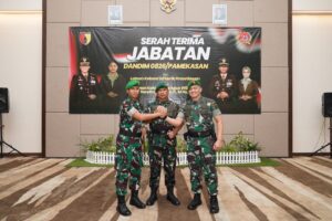 Warta In || PAMEKASAN – Tongkat komando Distrik Militer (Kodim) 0826/Pamekasan resmi berpindah tangan dalam sebuah upacara serah terima jabatan (sertijab) yang dipimpin langsung oleh Komandan Korem (Danrem) 084/Bhaskara Jaya, Brigjen TNI Danny Alkadrie. Letkol Kav Agus Wibowo Hendratmoko, S.H., M.Han., kini resmi menjabat sebagai Komandan Kodim (Dandim) 0826/Pamekasan, menggantikan Letkol Inf Herik Prasetiawan. Acara khidmat ini berlangsung pada Jumat, 10 Oktober 2025.