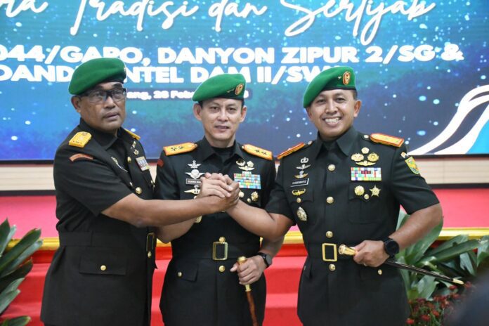 Warta.In | Palembang – Berlangsung khidmat di Gedung Sudirman Makodam II/Swj, Jalan Jenderal Sudirman KM 2,5 Kota Palembang, Jabatan Danrem 044/Gapo secara resmi diserahterimakan dari Brigjen TNI Adri Koesdyanto kepada Brigjen TNI Khabib Mahfud, S.I.P., M.M. Upacara tersebut dipimpin oleh Pangdam II/Sriwijaya Mayjen TNI Ujang Darwis, M.D.A serta dihadiri oleh para pejabat utama Kodam, prajurit, dan Persit Kartika Chandra Kirana jajaran, Sabtu (28/2/2026).