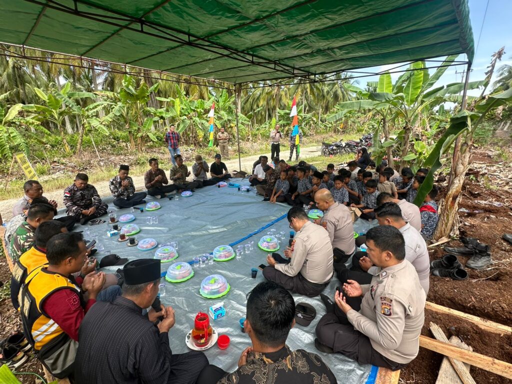 Menyampaikan Doa Pembangunan Jembatan Merah Putih Presisi Polsek Rangsang Desa Tanjung Gemuk Kecamatan Rangsang
