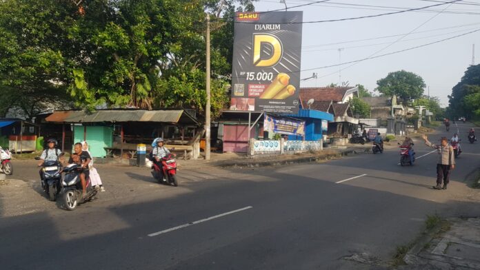 Terlihat kesibukan Anggota Petugas Polsek Ngimbang Aiptu Muji, R. dan Aipda Erwan melaksanakan pengaturan lalu lintas cegah lakalantas dipagi hari