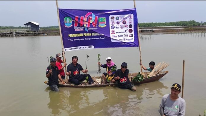 KOTA BEKASI – Puluhan wartawan mewakili dari berbagai organisasi pers di Kota Bekasi maupun Kabupaten Bekasi, dalam rangka rangkaian kegiatan acara memperingati Hari Pers Nasional (HPN) tahun 2025, Wartawan Bekasi Raya menggelar aksi peduli lingkungan dengan melakukan penanaman pohon Mangrove di kawasan pesisir Pantai Bahagia Kecamatan Muaragembong, Kabupaten Bekasi Provinsi Jawa Barat pada, Sabtu (12/4/2025).