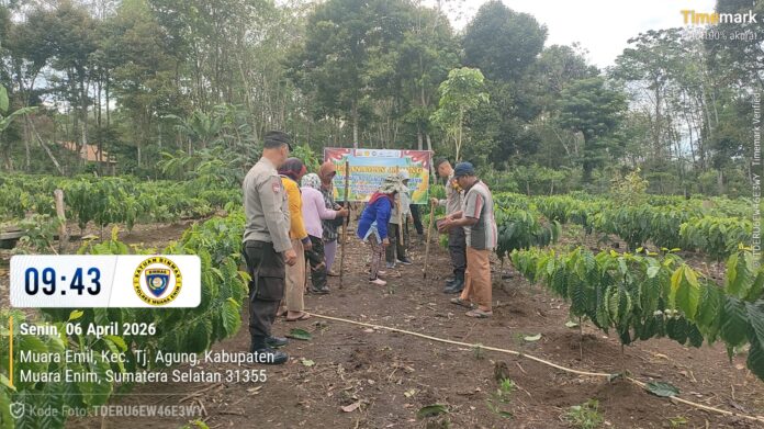 Warta.In | Muara Enim — Kepedulian terhadap kesejahteraan masyarakat kembali ditunjukkan oleh jajaran kepolisian. Di bawah terik matahari yang menyinari hamparan lahan di Desa Muara Emil, Kecamatan Tanjung Agung, Senin (06/04/2026), personel Polsek Tanjung Agung turun langsung membantu petani menanam jagung dalam program ketahanan pangan.