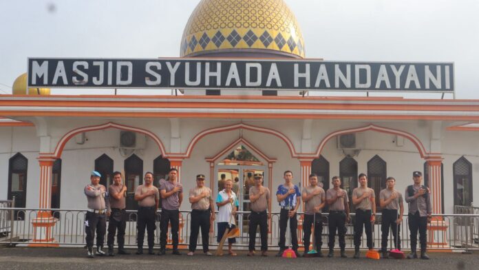Sumatera Selatan, PALI — Kepolisian Resor (Polres) Penukal Abab Lematang Ilir (PALI) melaksanakan kegiatan Gerakan Indonesia Asri dengan melakukan pembersihan lingkungan tempat ibadah dan saluran air di sekitar Masjid Syuhada, Kelurahan Handayani Mulya, Kecamatan Talang Ubi, Kabupaten PALI, Jumat (10/4/2026).