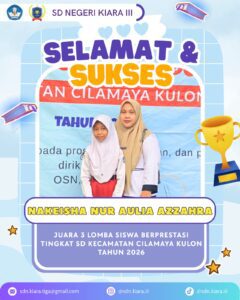 Juara 3 Lomba Siswa Berprestasi: Nakeisha Nur Aulia Azzahra.