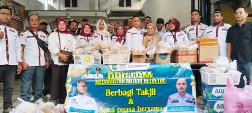 Warta.in Medan – Dewan Pimpinan Cabang Lembaga Pemberdayaan Masyarakat (DPC LPM) Kecamatan Medan Helvetia yang diketuai oleh Arya Syahputra bersama seluruh pengurus LPM se-Kecamatan Medan Helvetia menggelar kegiatan berbagi takjil kepada masyarakat serta buka puasa bersama, pada Kamis.(12/3/26)