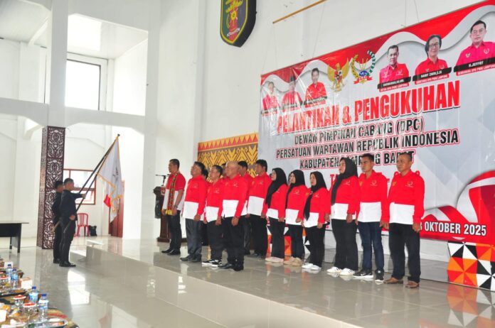 warta.in,,Lampung barat.senin 13 oktober 2025,Dpc PWRI resmi dilantik di gedung Pancasila pemnda Lampung barat.