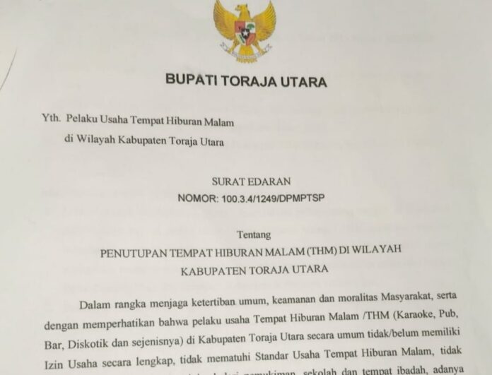TORAJA UTARA – Puluhan THM (Tempat Hiburan Malam) Klasifikasi Karaoke di Kabupaten Toraja Utara terancam ditutup jika tidak memiliki perizinan lengkap, Rabu (26/11/2025).