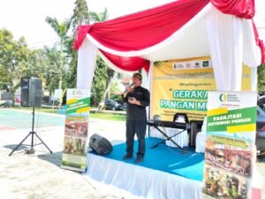 Dr. H. Dadang Naser, SH. S.Ipol. M. IPol. Anggota DPR RI F PG Komisi IV Gebyar Pangan Murah dan Berbagi Berkah Ramadhan 1447 H. di GPA Griya Prima Asri Bale Endah, Banjaran, Minggu, 15 Maret 2026. Berbagi berkah Ramadhan dan Stabilitas harga bahan kebutuhan pokok, utamanya di moment Ramadhan, yang biasanya di ikuti kenaikan Harga, Papar Kang DN, Sapaan Mantan 2 Periode Bupati Bandung.