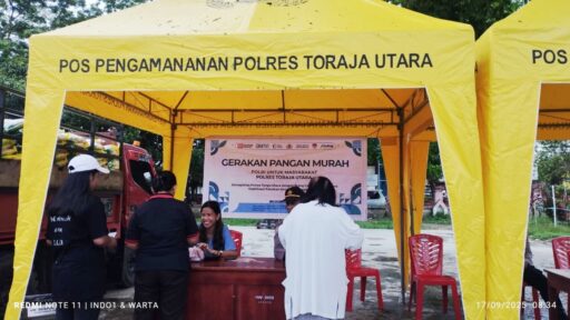 TORAJA UTARA – Polres Toraja Utara bersama Bulog Cabang Toraja Utara hari ini buka pasar Gerakan Pangan Murah dalam menjaga pasokan pangan dan harga beras yang terjangkau oleh masyarakat, Rabu (17/9/2025).