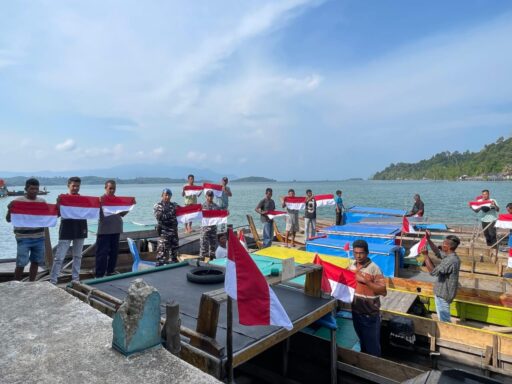 TNI AL, Penuba | warta.in – Dalam rangka menumbuhkan semangat nasionalisme dan cinta tanah air dikalangan masyarakat pesisir, Komandan Pos TNI AL (Posal) Penuba Letda Laut (PM) Budi Artino, S.Sos., secara langsung memimpin kegiatan penyerahan Bendera Merah Putih kepada seluruh nelayan di wilayah kerja Posal Penuba, Kabupaten Lingga, Provinsi Kepulauan Riau, Minggu (10/8/2025).