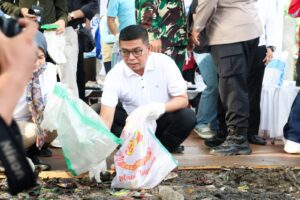 Wartain Banten | Pemerintahan | 20 September 2025 — Dalam rangka memperingati World Clean Up Day (WCD) Indonesia 2025, Gubernur Banten Andra Soni bersama Menteri Lingkungan Hidup dan Kehutanan (LHK) Republik Indonesia Hanif Faisol Nurofiq, Bupati Serang Ratu Rachmatuzakiyah, serta ratusan warga turun langsung melakukan aksi bersih-bersih sampah di Desa Teluk Terate, Kecamatan Kramatwatu, Kabupaten Serang, pada Sabtu (20/9).