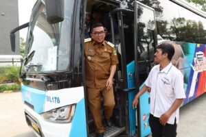 Wartain Banten | Pemerintahan | 07 Oktober 2025 — Gubernur Banten Andra Soni menjajal langsung layanan transportasi publik Trans Banten pada rute Terminal Pakupatan–Kampus Universitas Sultan Ageng Tirtayasa (Untirta) Sindangsari, Senin (6/10/2025). Aksi ini dilakukan sebagai bentuk evaluasi langsung atas layanan yang baru saja diluncurkan pada peringatan HUT ke-25 Provinsi Banten, Sabtu (4/10/2025) lalu.