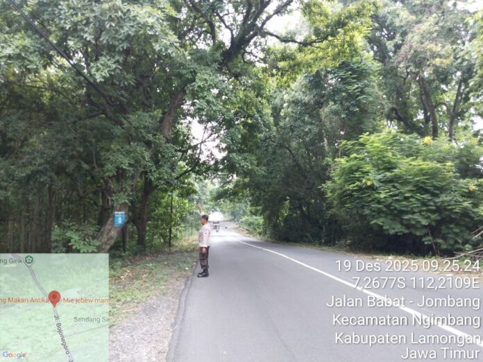 LAMONGAN//Warta.in –Dalam Rangka bentuk kepedulian polri dalam melayani masyarakat dengan sepenuh hati kali ini jajaran personil Polsek Ngimbang giat patroli pemantauan dan antisipasi Pohon Tumbang Guna cegah gangguan keamanan dan ketertiban masyarakat di jalan Raya Poros Jombang – Babat Kecamatan Ngimbang Kabupaten Lamongan,Jumat (19/12/2025) pukul 09.30 wib