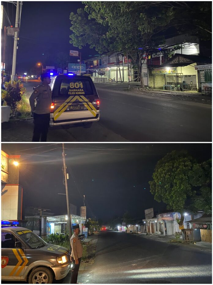 Guna Cegah Dan DayaTangkal 4C Anggota jaga Polsek Ngimbang Gelar Patroli Blue Light Di Daerah rawan pada Malam Hari