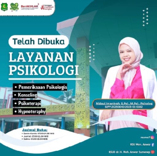 Demi meningkatkan kualitas pelayanan kesehatan secara menyeluruh, Rumah Sakit Umum Daerah dr.Moh.Anwar (RSUDMA) Sumenep kini menghadirkan layanan psikologi profesional, sebagai bentuk komitmen dalam mendukung kesehatan mental masyarakat.