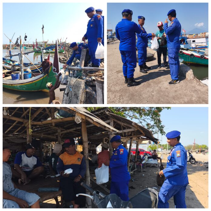 Warta In ||SITUBONDO – Dalam upaya mempererat hubungan dengan masyarakat pesisir, Satpolairud Polres Situbondo Polda Jatim kembali melaksanakan kegiatan sosial bertajuk “Jumat Barokah” dengan membagikan puluhan nasi bungkus kepada nelayan di kawasan Pantai Tanjung Pecinan, Kecamatan Mangaran, Jumat (10/10/2025) pagi.