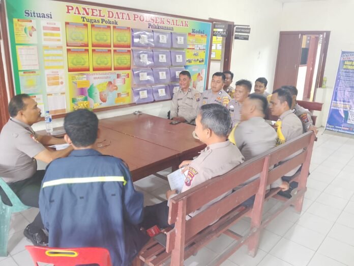 Kegiatan Tersebut Dilaksanakan Diruangan Mako Polsek Salak Yang Dihadiri Oleh Kapolsek Salak, Para Kanit Polsek Salak Dan Kapospol Pagindar Serta Seluruh Personil Bhabinkamtibmas Wilayah Hukum Polsek Salak.