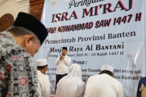 Wartain Banten | Pemerintahan | 16 Januari 2026  — Wakil Gubernur (Wagub) Banten Achmad Dimyati Natakusumah menghadiri peringatan Isra Mikraj Nabi Muhammad SAW 1447 Hijriah yang digelar di Masjid Raya Al Bantani, Kawasan Pusat Pemerintahan Provinsi Banten (KP3B), Kota Serang, Kamis (15/1/2026).