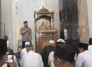 Sebelum pelaksanaan sholat Jumat, Kapolsek menyampaikan sambutan singkat di hadapan jamaah masjid. Dalam kesempatan tersebut, beliau mengajak seluruh warga untuk kembali mengaktifkan ronda siskamling sebagai bentuk partisipasi aktif dalam menjaga lingkungan yang aman dan kondusif.