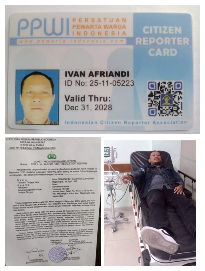 Akibat peristiwa kekerasan tersebut, Ivan langsung menjalani pemeriksaan medis untuk membuat visum et repertum sebagai bukti fisik kekerasan, dan selanjutnya mengajukan laporan resmi ke kantor Polres Majalengka. Laporan tersebut tercatat dalam buku register kepolisian dengan Nomor: LP/B/531/XII/2023/SPKT/POLRES MAJALENGKA/POLDA JABAR, yang diterima langsung oleh Kanit SPKT II, Aiptu Mumuh Sukmana, pada Jumat, 29 Desember 2023. Namun sayang, bukti kuat dan proses administrasi yang jelas itu seolah hilang ditelan waktu, sementara pelaku masih leluasa beraktivitas.