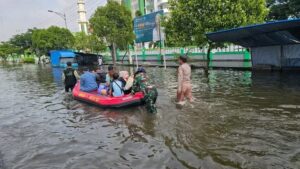 Selain melakukan rekayasa lalu lintas, personel Satlantas Polrestabes Semarang juga melakukan evakuasi warga yang hendak menuju RS Sultan Agung menggunakan perahu karet. Langkah ini diambil untuk memastikan masyarakat tetap dapat memperoleh pelayanan kesehatan dengan aman di tengah genangan air yang belum surut.