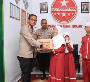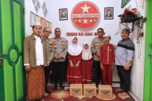 Kapolres Metro Bekasi Kota bersama Polsek Bekasi Utara, memberikan bantuan sosial berupa paket sembako Kepada anak anak yatim piatu di Yayasan Nur Iqsan Ibrahim perum villa mas garden blok F8 rt 08 rw 09 Kel. perwira Kec. Bekasi Utara