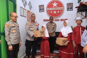 warta.in,Jumat, 21 Maret 2025 – Kapolres MetroBekasi Kota KOMBES POL. DANI HAMDANI, S.I.K., M.PM bersama Kapolsek Bekasi Utara Kompol M Yus Jahan SE, MM serta anggota memberikan bantuan sosial berupa paket sembako kepada anak anak yatim piatu di Yayasan Nur Iqsan Ibrahim perum villa mas garden blok F8 rt 08 rw 09 Kel. perwira Kec. Bekasi Utara.