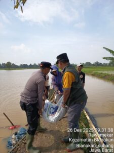 Menanggapi situasi tersebut, sejak pukul 09.00 WIB aparat Kepolisian bersama TNI setempat, Muspika Kecamatan Blanakan, pemerintah desa, instansi terkait, serta warga Desa Jayamukti bergerak cepat melakukan penanganan darurat. Upaya dilakukan dengan menutup bagian tanggul yang jebol menggunakan karung-karung berisi pasir dan tanah, yang diperkuat dengan bambu sebagai penahan.