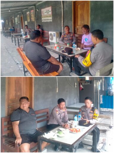 Beesama Kanit Sabara Ipda Istiono, S.H, Kanit Intelkam Aipda Eric dan Anggota Polsek Ngimbang Aiptu Suhadi dan Bripka Afis untuk Menemui Tokoh mastarakat dan tokoh pemuda di Rumah Bapak Hadi Wibowo Dusun Taoas Rt08/05 Desa Sendangrejo Kecamatan Ngimbang