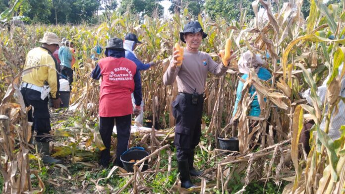 LAMONGAN//Warta.in – Kapolsek Ngimbang Iptu IWayan Sumantra, S.H,bersama personil Polsek Ngimbang dan masyarakat melaksanakan Panen Raya tanaman jagung dari program Asta Cita pemanpaatan Pekarangan tanaman pangan bergizi (P2B) saat Panen raya tanaman jagung di Poktan Sumber Agung Dusun Dawen Desa Sendangrejo Kecamatan Ngimbang,Jum’at (02/01/2026) pukul 07.30 wib