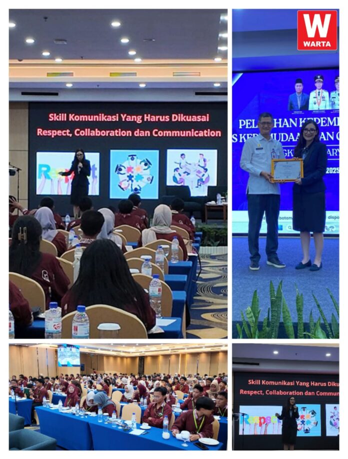 Batam – Dispora Kota Batam – AP Premier Batam, Rabu, 26 November 2025 – Pelatihan Public Speaking for Leadership & Komunikasi Kepemimpinan Batch 1 Tahun 2025 berlangsung sukses dan mendapat antusiasme tinggi dari para peserta. Kegiatan ini berlangsung interaktif, penuh praktik, serta dipandu langsung oleh Karina Rasmita Sembiring, seorang Certified Public Speaker, Coach, dan Trainer BNSP berpengalaman dalam pengembangan kompetensi kepemimpinan.