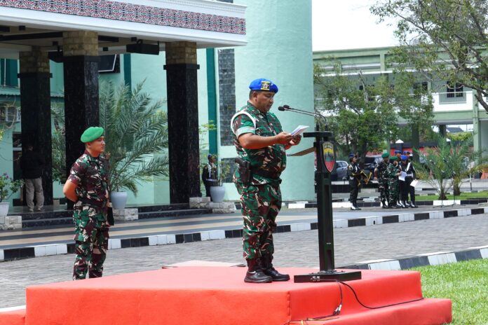 Warta.in Medan – Kepala Staf Kodam (Kasdam) I/Bukit Barisan Brigjen TNI Deki Santoso Pattinaya memimpin Upacara Gelar Operasi Penegakan Ketertiban (Gaktib) dan Operasi Yustisi Polisi Militer Tahun Anggaran 2026 di Lapangan Upacara Makodam I/BB, Jalan Gatot Subroto, Medan, Jumat (13/2/2026). Upacara ini menandai dimulainya pelaksanaan operasi penegakan hukum dan disiplin bagi prajurit di wilayah Kodam I/Bukit Barisan.