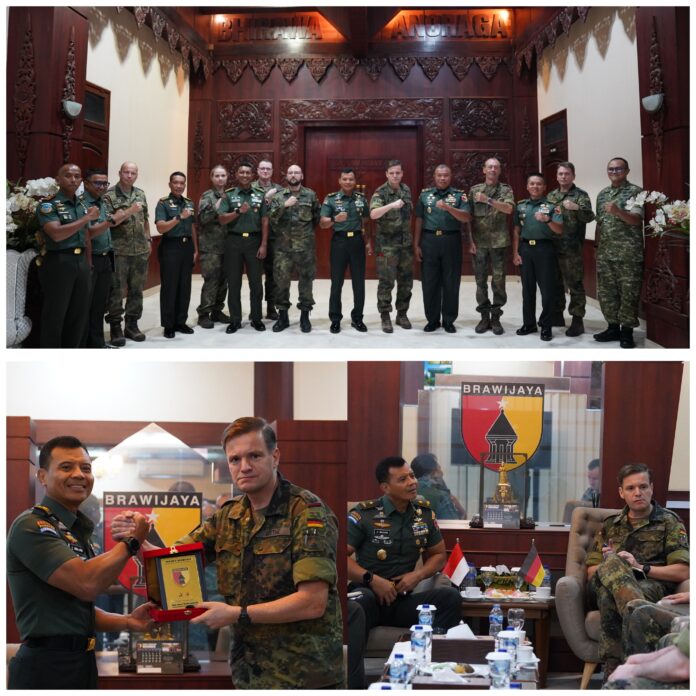 Warta In || SURABAYA– Kasdam V/Brawijaya, Brigjen TNI Zainul Bahar, S.H., M.Si. mewakili Pangdam V/Brawijaya, Mayjen TNI Rudi Saladin, M.A. menerima kunjungan Delegasi Angkatan Darat Jerman dalam rangkaian kegiatan *1st Army Staff Talks German 2025* di Ruang Bung Tomo Makodam V/Brawijaya, Kamis (13/11/2025).