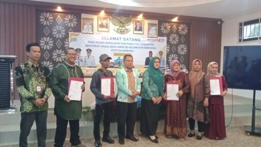 Warta In | Palembang – Dalam upaya mendorong pelaku usaha mikro kecil dan menengah (UMKM) untuk memperoleh sertifikasi halal, Kecamatan Kemuning mengadakan kegiatan Sosialisasi dan Pendampingan Sertifikasi Halal pada Kamis (25/07/2025). Kegiatan ini berlangsung di aula kantor Kecamatan Kemuning dan diikuti oleh puluhan pelaku UMKM dari berbagai kelurahan.